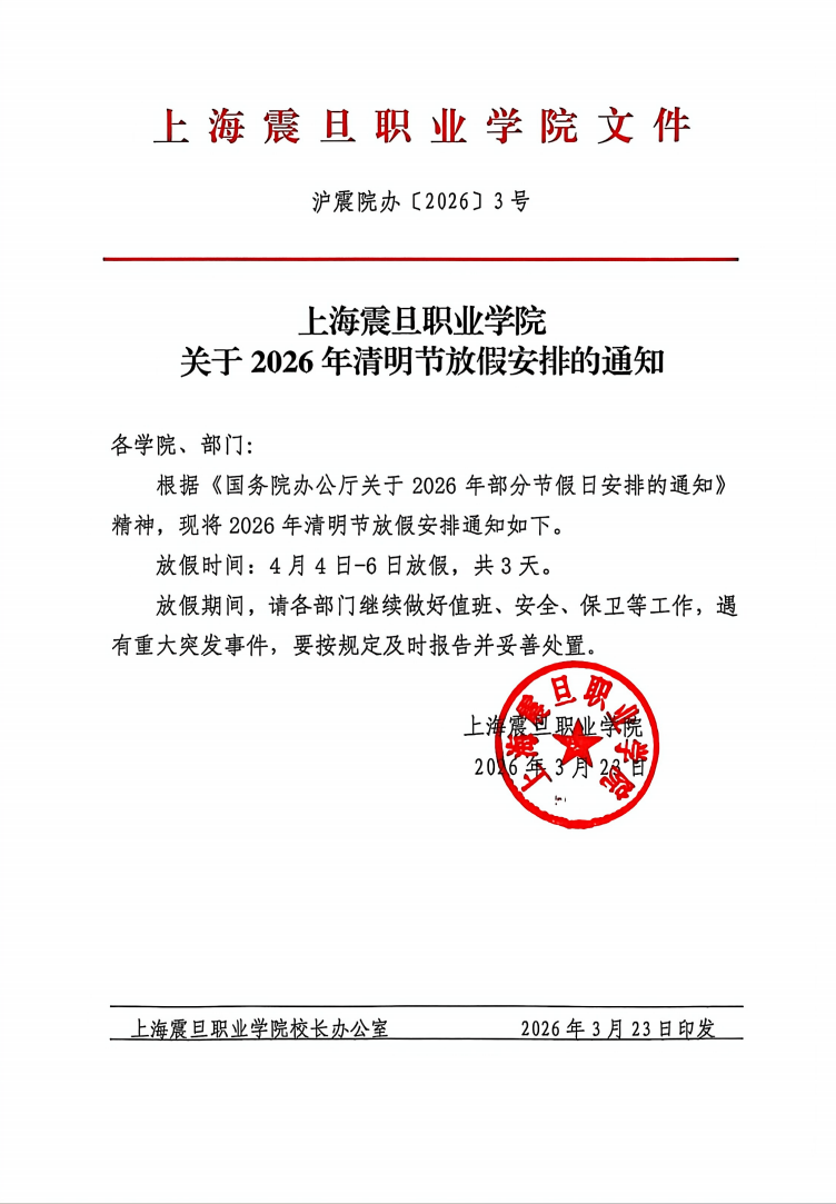 上海震旦职业学院关于2026年清明节放假安排的通知